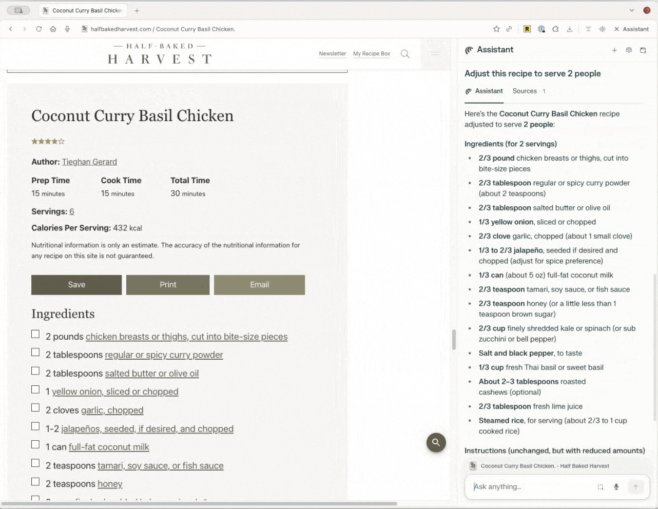 • Inline Research: Comet pulls from multiple sources and shows you where information came from.