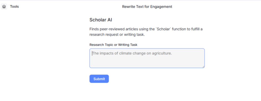 - Practical Academic Features – Tools like Scholar AI and Discussion Board Response are unique and especially useful for students, producing peer-reviewed outputs and structured academic responses.