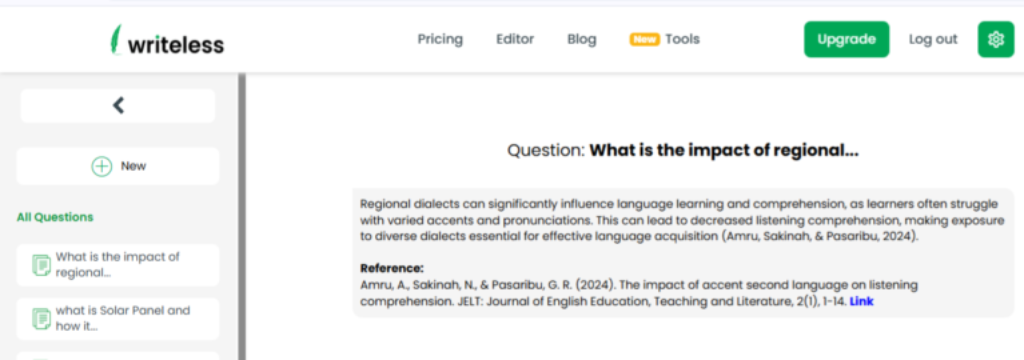 Writeless focuses on short, functional writing. Its results are clean and grammatically sound, ideal for emails, captions, and summaries. However, the lack of contextual depth becomes evident in long-form pieces, where the AI may oversimplify complex ideas. Creativity and tone variation are limited, making the tool better for quick, transactional writing rather than storytelling or SEO-heavy work.