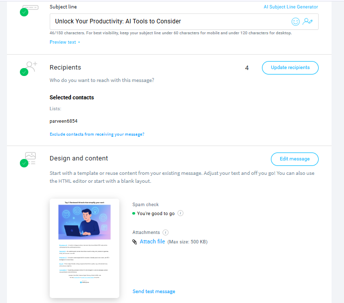 Email dispatch speed is impressively fast. During testing, it took around 8–10 minutes to send messages to 100 subscribers, which is efficient for a platform of this scale.