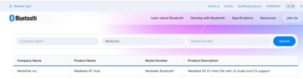 MediaTek’s new Bluetooth 6.1 Host software stack has just been certified as well, with support for LE Audio, Auracast broadcast audio, and enhanced Channel Sounding (CS) capabilities. This looks directly connected to MediaTek’s next major SoCs, likely the Dimensity 9500 successor.