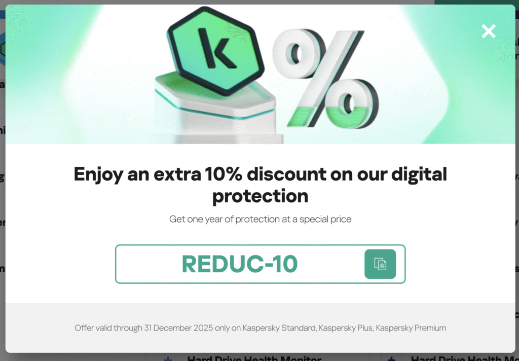 - Kaspersky is offering an exclusive 10% discount on all its digital protection plans including Kaspersky Standard, Plus, and Premium.