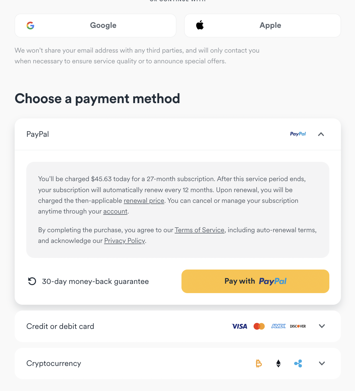 Tip: If you plan to use the VPN for more than 6 months, the 2-year plan offers the lowest effective rate and 3 months free.