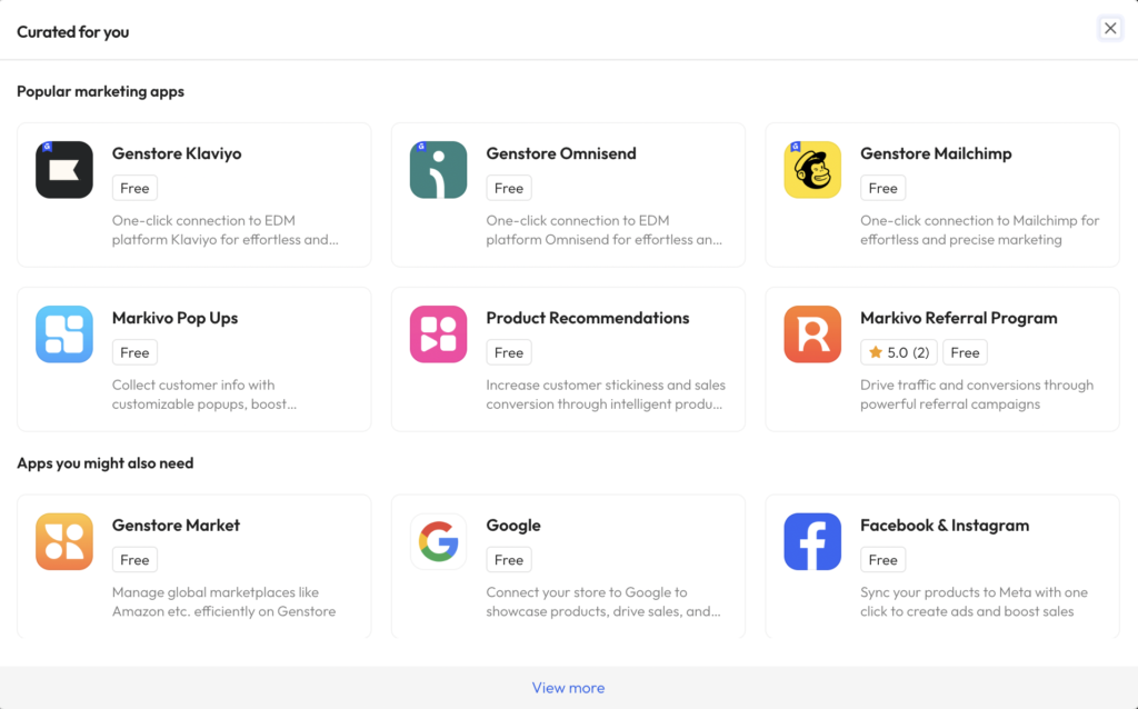Expanding reach is effortless with multi-channel integrations such as Facebook, Google, and TikTok are supported out of the box. Moreover, an extensive app marketplace caters to Sales Channels, Store Design, Management, and Conversion Boost, allowing businesses to scale with flexibility.