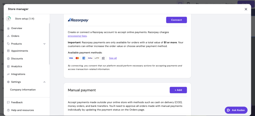 For payments, Hostinger supports major gateways like Razorpay, which cover most small business needs. The checkout process felt reliable and user-friendly. On the backend, shipping rules and tax settings are available, though they’re more basic compared to advanced platforms like Shopify. Inventory management works fine for small to mid-sized catalogs, but may not scale for very large stores.