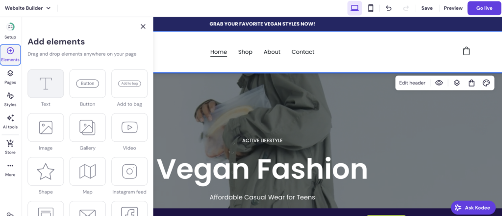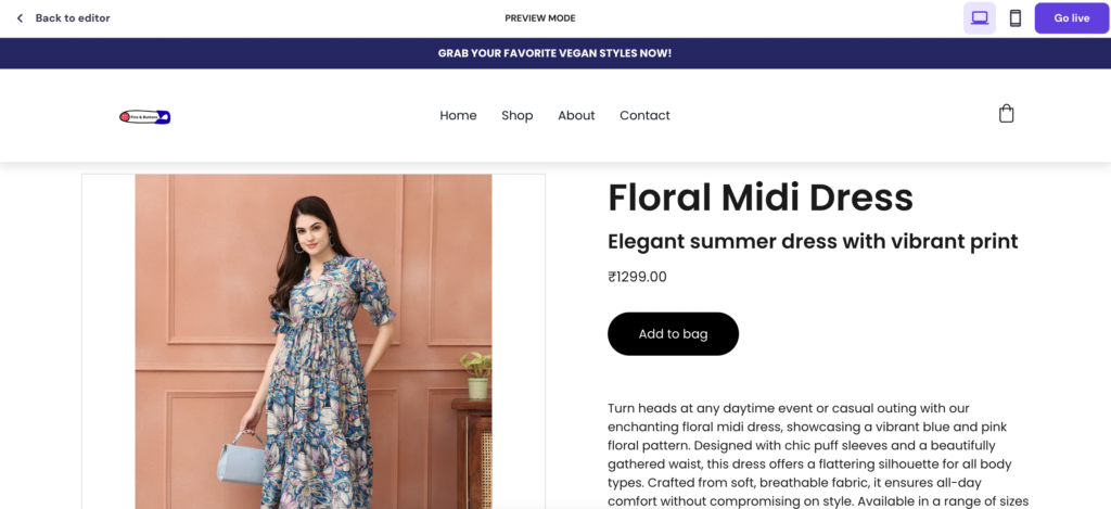Setting up a basic online store felt simple. The AI automatically included product pages, a shopping cart, and checkout options. Editing text, swapping images, and adjusting layouts was intuitive through the drag-and-drop editor.
