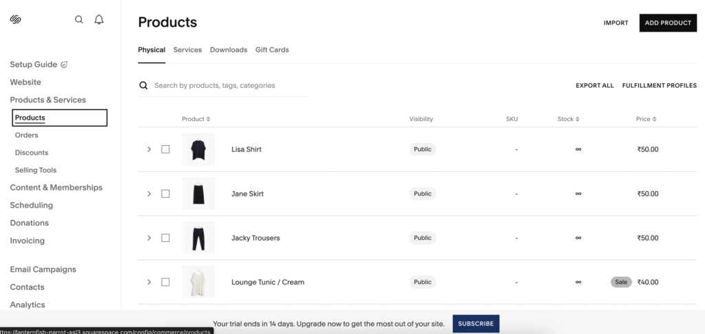 Adding products was simple. I could upload images, set prices, and add descriptions within a clean product editor. Squarespace supports product variants (like size or colour), and I was able to group items into categories for easy navigation. The catalog felt streamlined, though not as advanced as Shopify when handling very large inventories.
